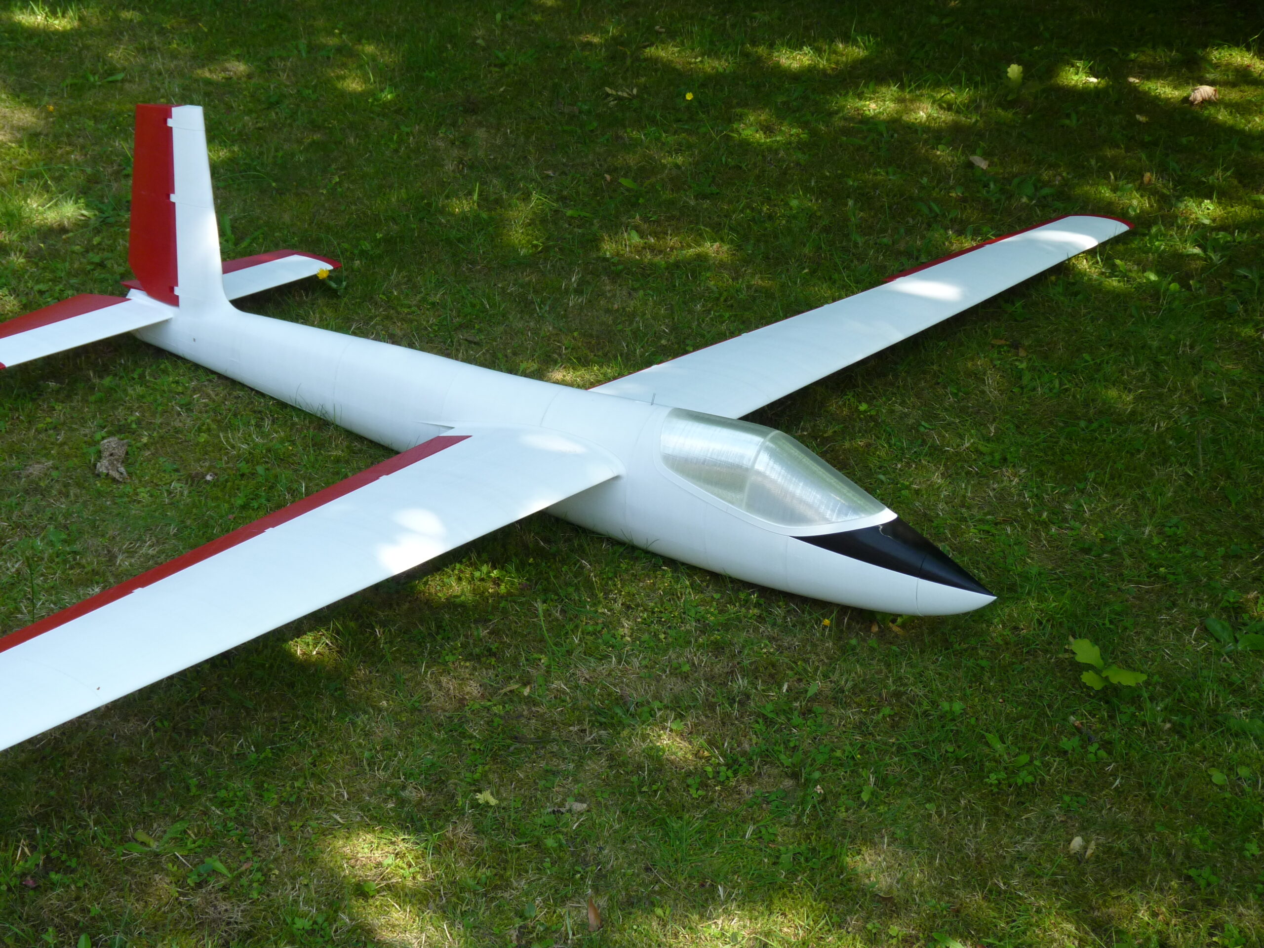 3D-printed model-airplane with 2880mm wingspan. 4 channel controls + flaps and tow-release/motor. Takeoff weight (motorized) ca. 4kg. The model is capable of light aerobatics and features airfoil designed for scale gliding.