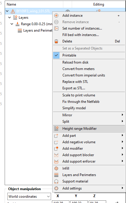 Open the above 3mf files with PrusaSlicer, proceed to the Print Settings and Filament Settings tab and save the configurations. Amend the configurations according to the needs of your printer. Since then you can import STL files into the new project or open our prepared 3mf files where available, and simply choose your own settings from the dropdown menus to slice the models. When importing STL files, you may need to apply some Height range modifiers (please see below).
