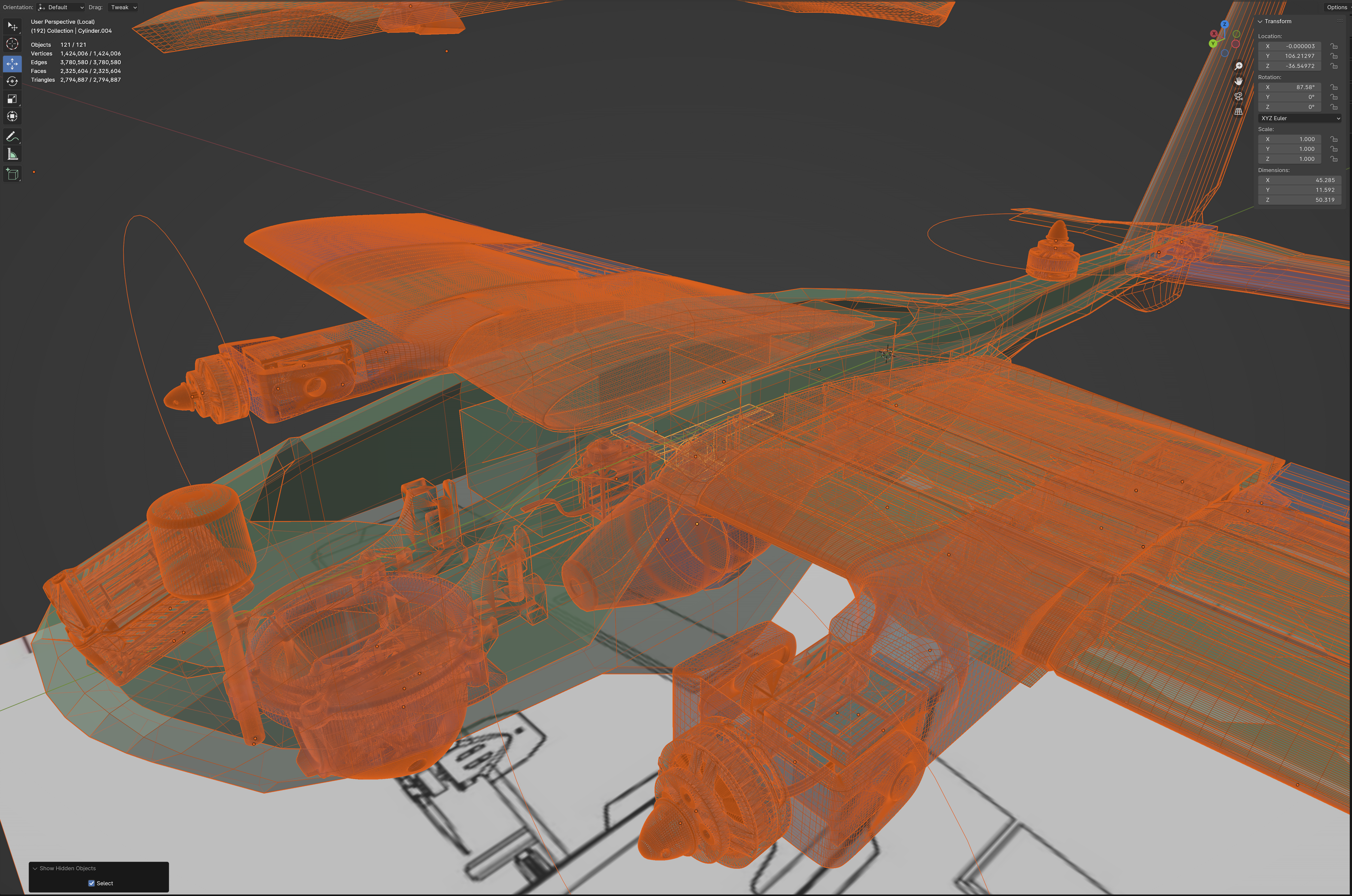 Extensive hi-tech 3d structural reinforcement resulting in solid yet lightweight airframe thanks to additive 3Dprinting technology